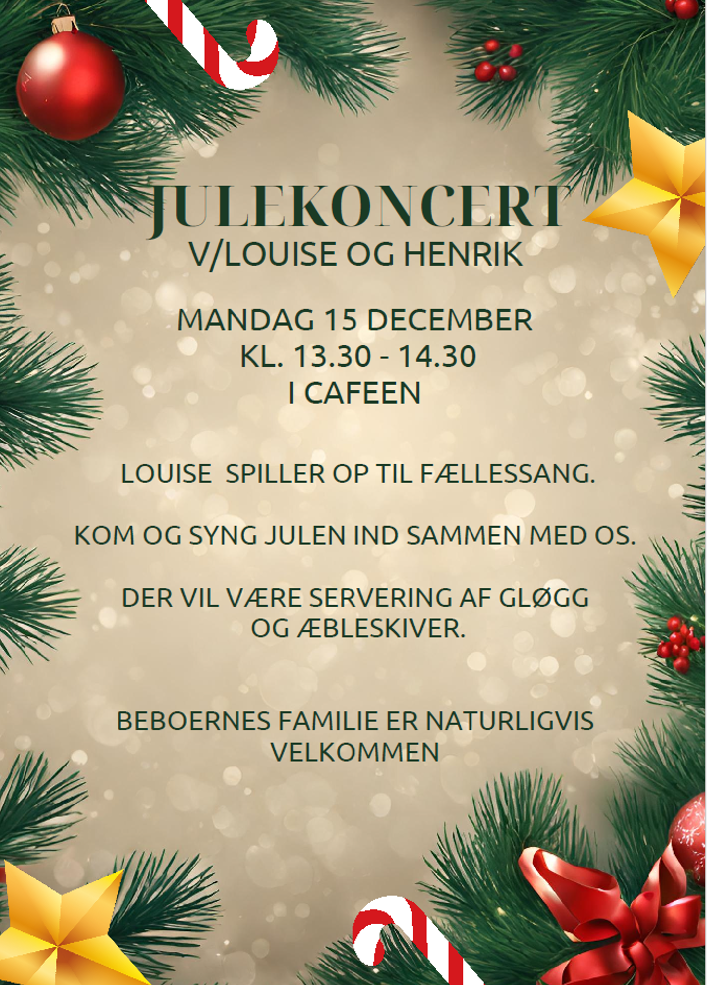 Julekoncert ved Louise og Henrik mandag den 15. december kl. 13.30 - 14.30 i cafeen.
