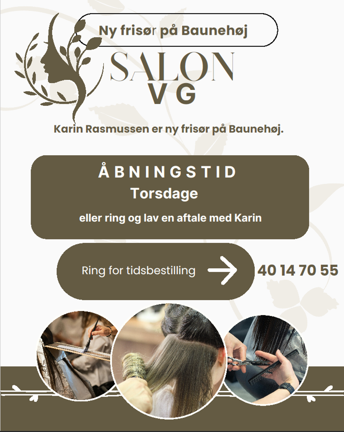 Ny frisør på Baunehøj For alle interesserede. 21. jan. 2026 Print Forstør tekst 75% 100% 125% 150% Del Link kopieret Indhold Her kan du læse om den nye frisør på Baunehøj.