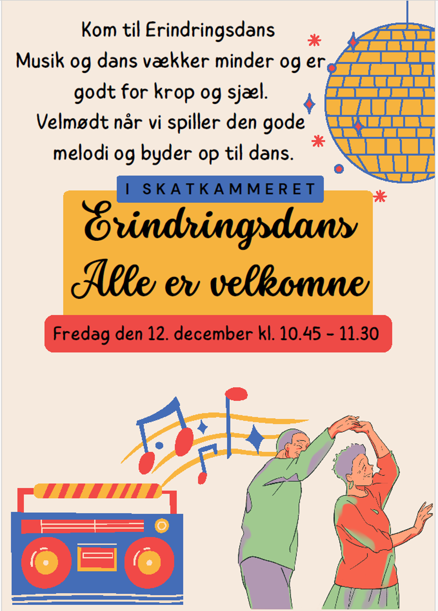 Kom til Erindringsdans fredag den 12. december kl. 10.45 - 11.30 i skatkammeret.