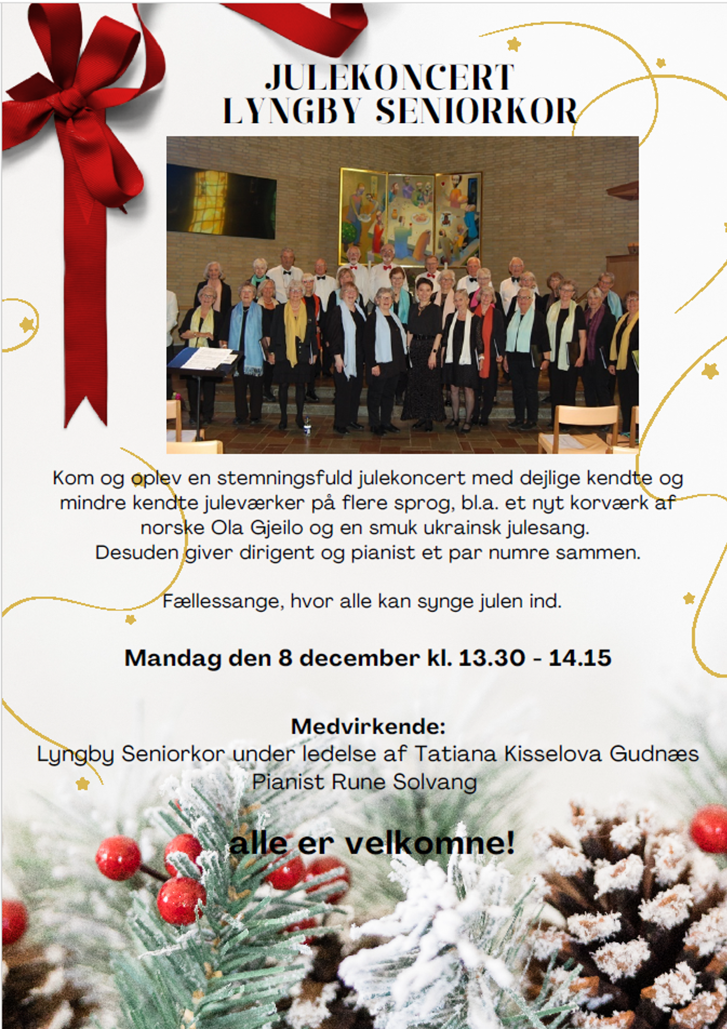 Julekoncert med Lyngby seniorkor mandag den 8. december kl. 13.30 - 14.15 i cafeen.